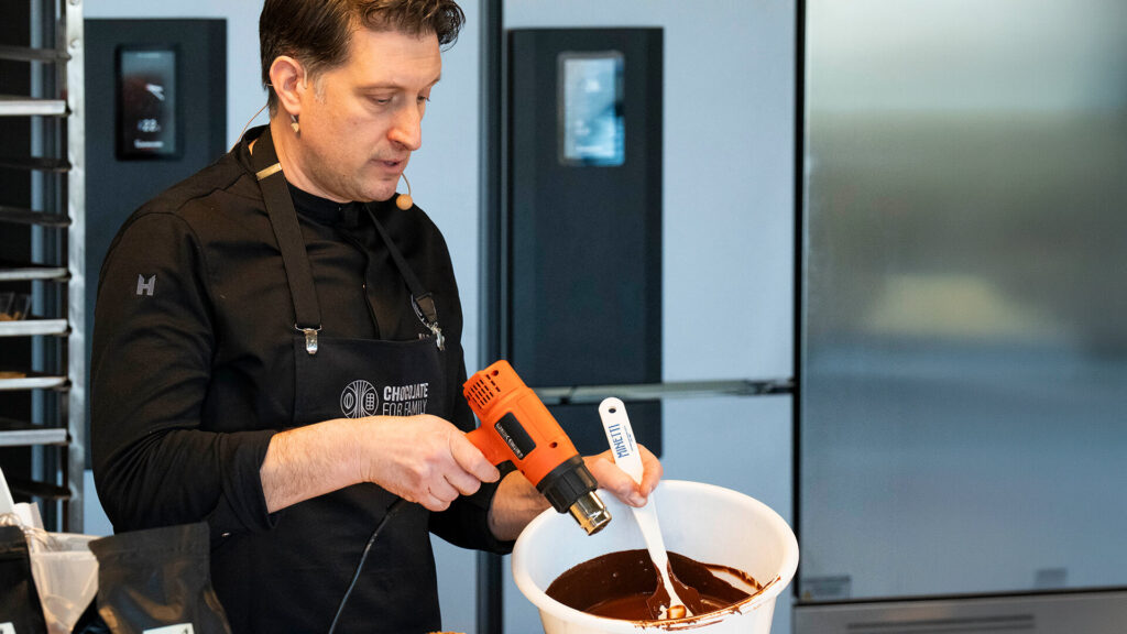 A seguire, la masterclass dedicata all’arte del cioccolato guidata da Alberto Simionato, professionista eclettico e formatore con una solida esperienza internazionale nel mondo della pasticceria e del cacao. Un percorso tecnico e creativo che ha condotto i partecipanti alla scoperta delle lavorazioni del cioccolato attraverso la realizzazione di uova di Pasqua e mignon gourmet. Durante la lezione, il Maestro Cioccolatiere ha mostrato dal vivo la preparazione di diverse creazioni, tra cui mignon realizzati con cioccolato Integral White e Milky, bicchierini dessert da gelateria, snack da merenda a base di cioccolato, fino alle uova di Pasqua con decorazioni e inclusioni croccanti. Spazio anche alla gelateria, con l’utilizzo delle quattro masse Character per la creazione di un gelato equilibrato e strutturato.